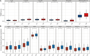 Moreover, the boxplots also showed that eight of the 10 immune checkpoint inhibitor-related genes (i.e., CTLA4, HAVCR2, IGSF8, LAG3, PDCD1, PDCD1LG2, SIGLEC15, and TIGIT) were expressed at lower levels in C1 than C2 (Figure 4B). These findings provide further evidence of a significant association between taurine metabolism and immune activity.