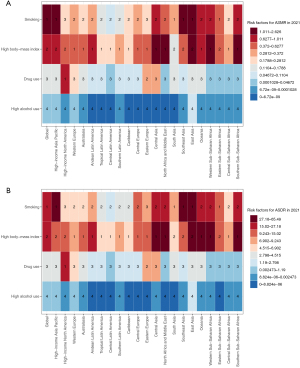- Global burden and strength of evidence for 88 risk factors in 204 countries and 811 subnational locations, 1990-2021: a systematic analysis for the Global Burden of Disease Study 2021. Lancet 2024;403:2162-203. [Crossref] [PubMed]