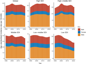 ASIR, age-standardized incidence rate; CI, confidence interval; EAPC, estimated annual percentage change; GBD, Global Burden of Disease; SDI, sociodemographic index; UI, uncertainty interval.