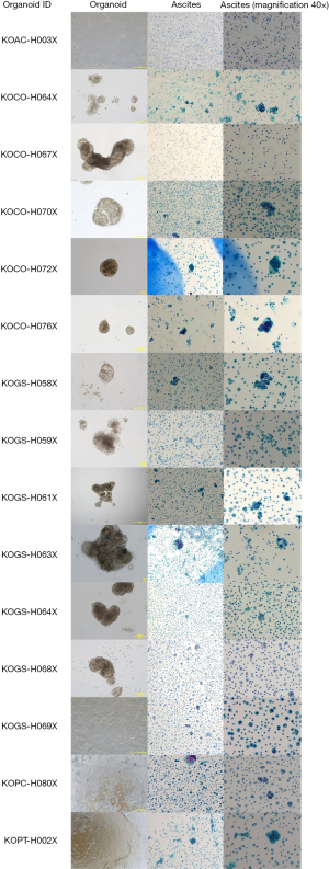 - Choi W, Kim YH, Woo SM, et al. Establishment of Patient-Derived Organoids Using Ascitic or Pleural Fluid from Cancer Patients. Cancer Res Treat 2023;55:1077-86. [Crossref] [PubMed]