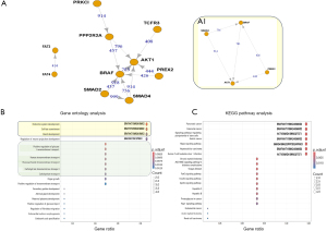GO annotations link PREX2 to GTPase activator activity and guanine nucleotide exchange factor activity. It plays a regulatory role in the insulin signaling pathways, and both its mutation and overexpression have been implicated in tumorigenesis (Figure 2, A1, yellow rectangle). GO analysis of the pathogenic genes identified in this case revealed their involvement in critical biological processes including endocrine and glandular system development, carbohydrate transport, and cell fate commitment (Figure 2B, yellow rectangle). A second cluster of genes was associated with the positive regulation of glucose and general carbohydrate transport (Figure 2B, light green rectangle). Complementary KEGG pathway analysis further supported the association of these mutated genes with various digestive system cancers (Figure 2C).
