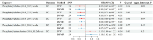 The results of the heterogeneity and pleiotropy analyses were not significant, confirming the robustness of our results (Table S2). The reverse MR analysis showed that EC had no causal effects on these lipids and metabolic features (P>0.05), excluding reverse causation (Figure 7).