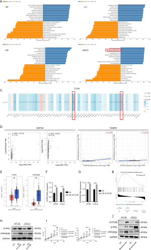 Based on the aforementioned bioinformatics analyses and cellular experiments, we found that ACTL6B exhibited significant tumor-suppressive effects when highly expressed. To further investigate the specific mechanisms by which ACTL6B suppresses cancer, we used the LinkedOmics database to compare transcriptomic sequencing data from two datasets (TCGA with 379 patients and CPTAC with 97 patients). The analysis identified 3,141 genes that were positive correlated with ACTL6B (P=0.01). Further enrichment analysis of these genes revealed a significant involvement of Sphingolipid signaling pathway (Figure 7A,7B).