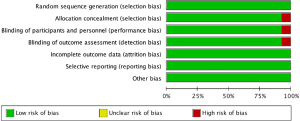 The methodological quality of the included studies was assessed using the Cochrane Risk of Bias Tool (version 5.4) (16), which evaluates five domains: randomization process, deviations from intended interventions, missing outcome data, outcome measurement, and selection of reported results. Each domain was rated as “low risk”, “high risk”, or “unclear risk”, and the studies were categorized accordingly. The quality assessments were conducted independently by two reviewers, and any disagreements were resolved by consensus.