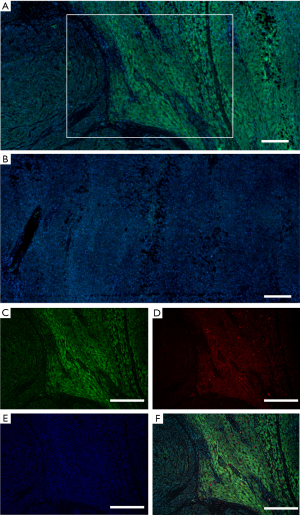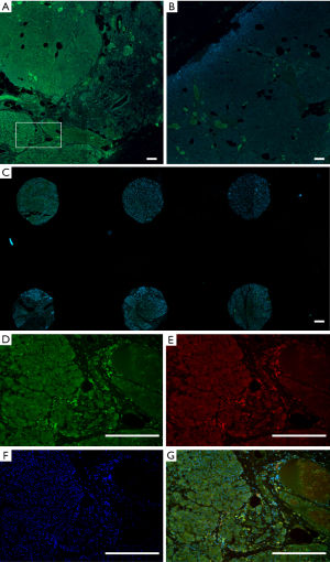 The resected specimen revealed a multilobular, tan tumor occupying close to the entire mass of the distal pancreas (110 mm × 60 mm × 60 mm), infiltrating adjacent pancreatic tissue and adipose tissue, with macroscopic invasion of the splenic vein and left adrenal gland. Histopathology showed a pancreatic NET, grade 2 [2020 World Health Organization (WHO) classification] with a Ki67 index of 3%. Immunohistochemistry staining was positive for CAM5.2 (monoclonal antibody targeting cytokeratins 8 and 18), synaptophysin, CD56, chromogranin A. There was negative staining for glucagon, insulin, serotonin and gastrin (Figure 2). 1-alpha hydroxylase immunofluorescence staining following antigen retrieval revealed a high expression level within the tumor (Figure 3A-3C). Additionally, high expression levels were also colocalized with CD68 positive staining which is a monocyte/macrophage marker (Figure 3D-3G).