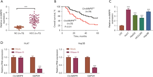 Tumor and adjacent normal (NC) tissues were obtained from 70 HCC patients at Mengchao Hepatobiliary Hospital of Fujian Medical University. The tissues were frozen and stored at −80 ℃ for analysis of the expression of circMMP9. The overall survival (OS) of these patients was monitored. Participant clinical pathological characteristics are shown in Table 1. The study was conducted in accordance with the Declaration of Helsinki (as revised in 2013). The study was approved by the Institutional Ethics Review Board of Mengchao Hepatobiliary Hospital of Fujian Medical University (No. 2020-035-01) and informed consent was taken from all the patients.