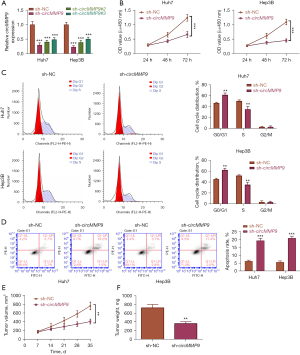Knockdown of circMMP9 reduced HCC cell proliferation, induced cell cycle arrest and apoptosis in vitro and attenuated tumor growth in vivo
